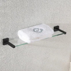 Bathroom Wall Shelf & Hanging Towel Rail – Mango Oak & Black