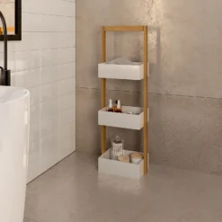 Homebase Edit Bathroom 3 Tier Storage Caddy – White & Bamboo