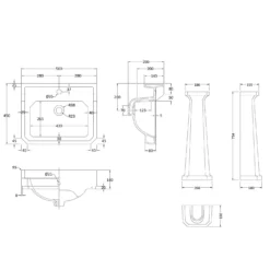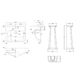 Balterley D-Shape 1 Tap Hole Basin And Full Pedestal – 425mm
