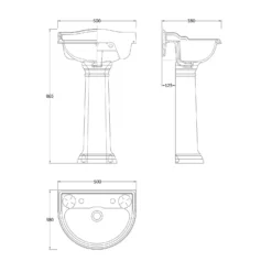 Balterley Harrington Round 2 Tap Hole Basin Pedestal – 500mm