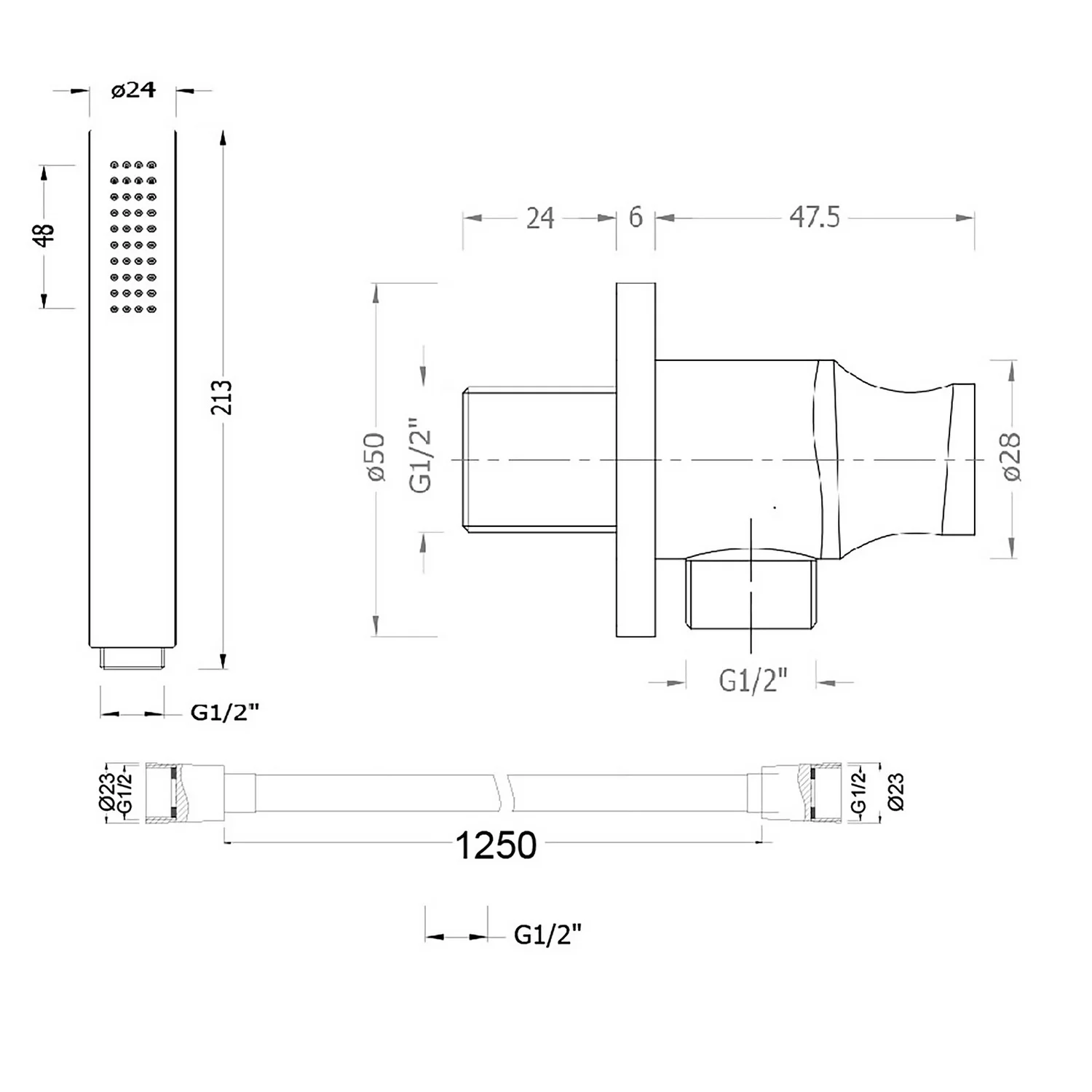 | Product Dimensions (H)x(W)x(D) | 24mm (handset) x 213mm (handset) x 1.25m (hose) |