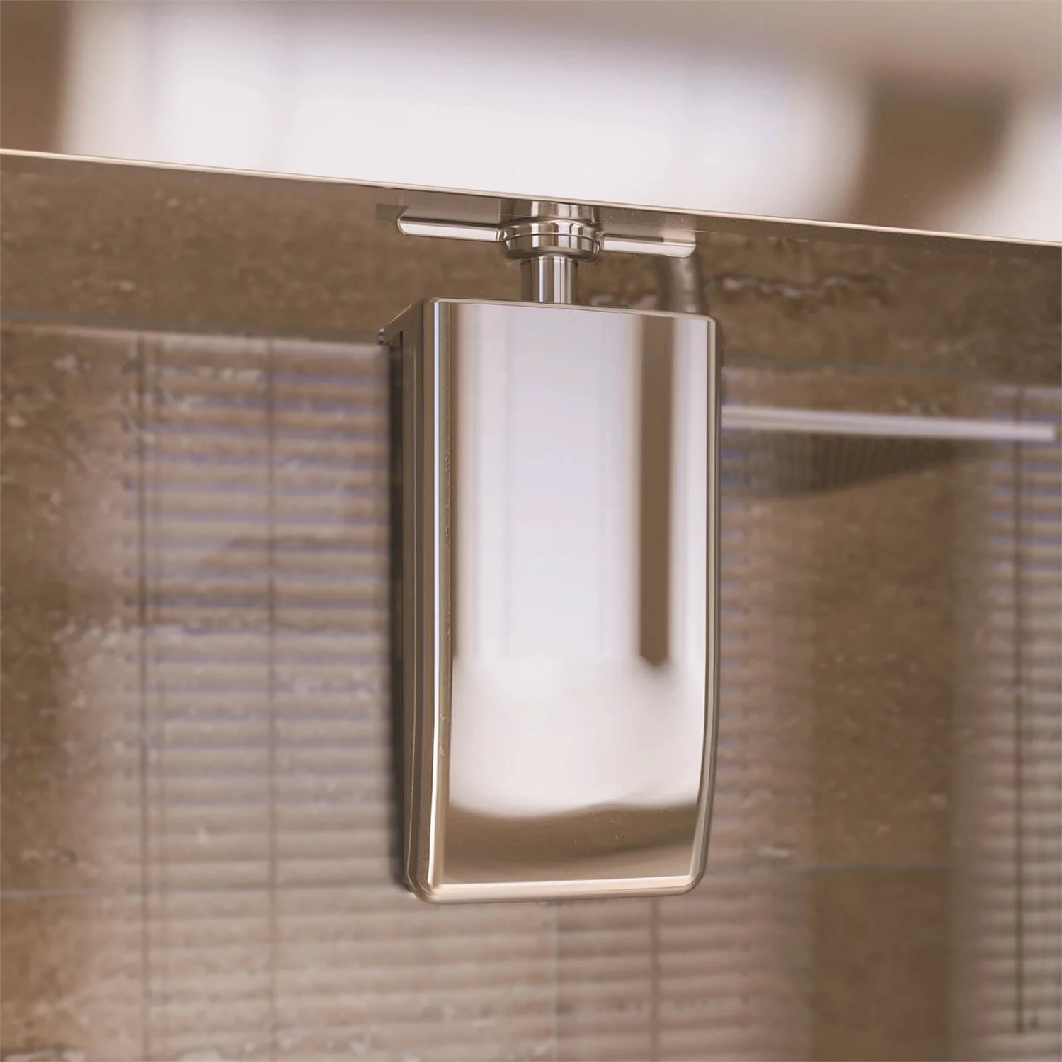 Smooth-opening pivot door enclosure with a stylish design, great for a modern bathroom. Aluminium construction with polished silver-effect finish. Aqualux’s 800mm x 800mm pivot door shower enclosure features 6mm thick safety glass and an easy access door.