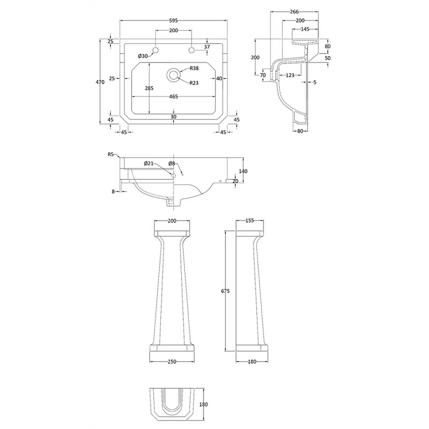 Balterley Harrington 2 Tap Hole Basin And Pedestal - 600mm - Image 2