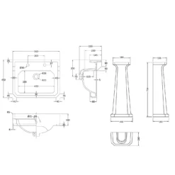Balterley Harrington Comfort Height 2 Tap Hole Basin Pedestal – 560mm