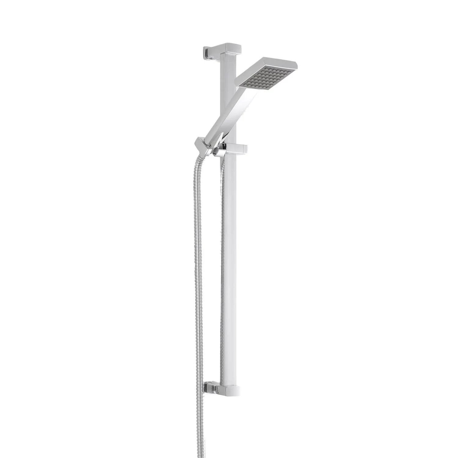 Looking for a simple shower kit to update and enhance your bathroom? The simply designed slide rail kit is compact making it perfect for en-suites and cloakrooms. The single function shower handset lets the water flow in a classic shower jet flow a good all round flow to make your showering experience relaxing. A sleek and modern design with a large flat square shower head clean lines and a square rail for an elegant shower to update any bathroom. Manufactured from high quality brass with a sleek and modern chrome finish to fit in with any modern bathroom design Excellent flow rates even at low pressure.