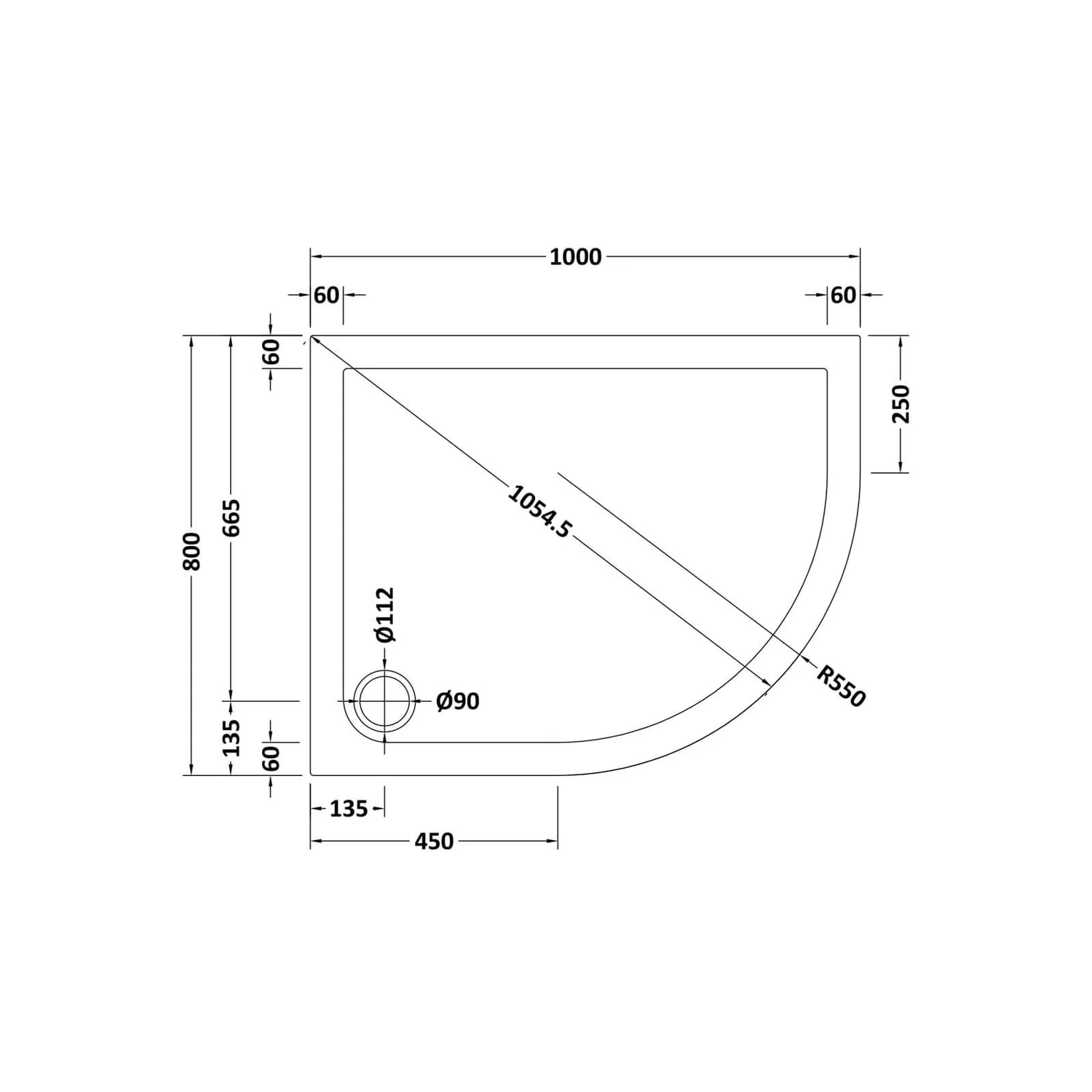 Balterley Right Hand Offset Quadrant Shower Tray – 1000 X 800mm
