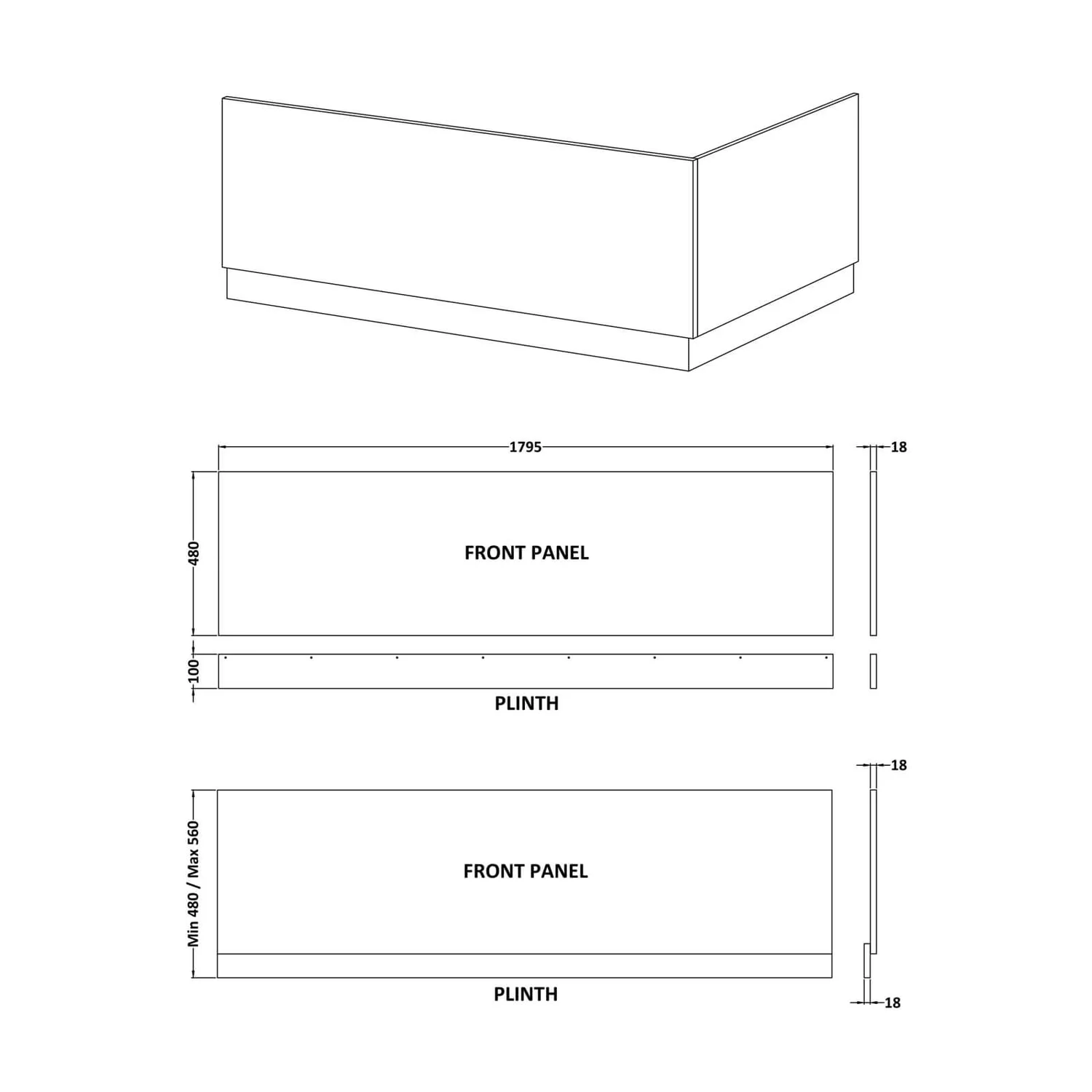 - Coordinating bath end panel also available