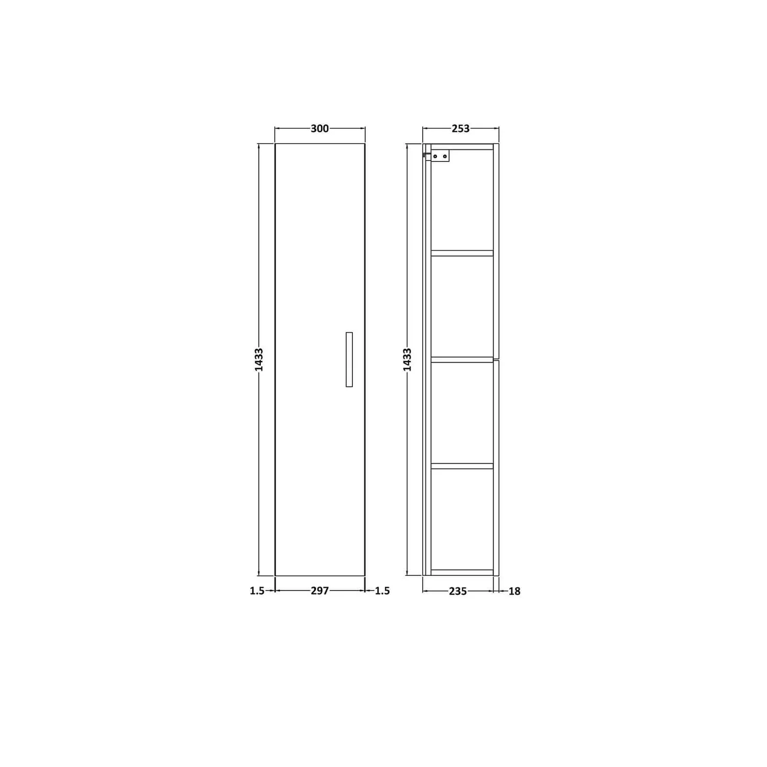 (W)300mm x (H)1433mm x (D)235mm