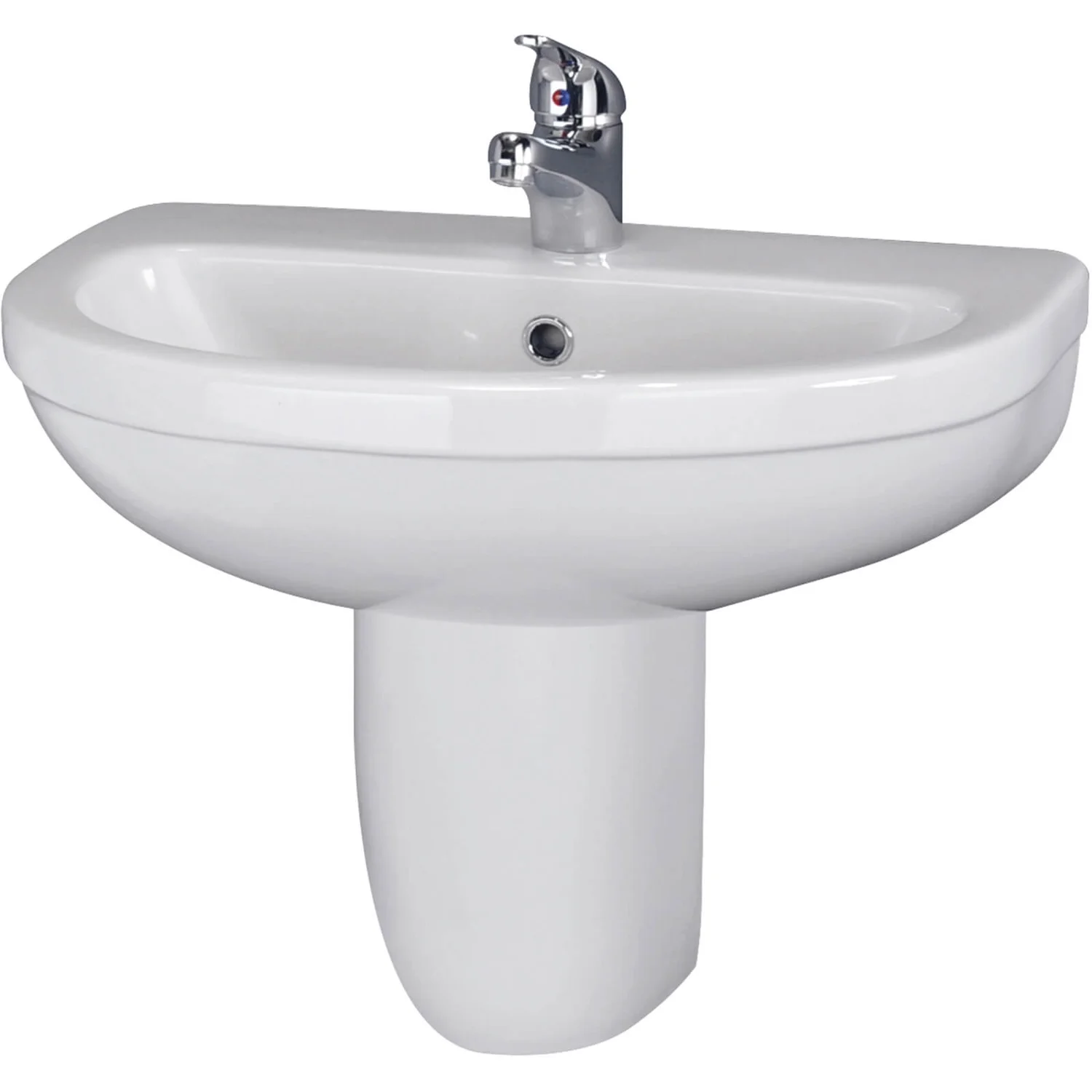 This basin and pedestal features modern curves creating a clean neat design.