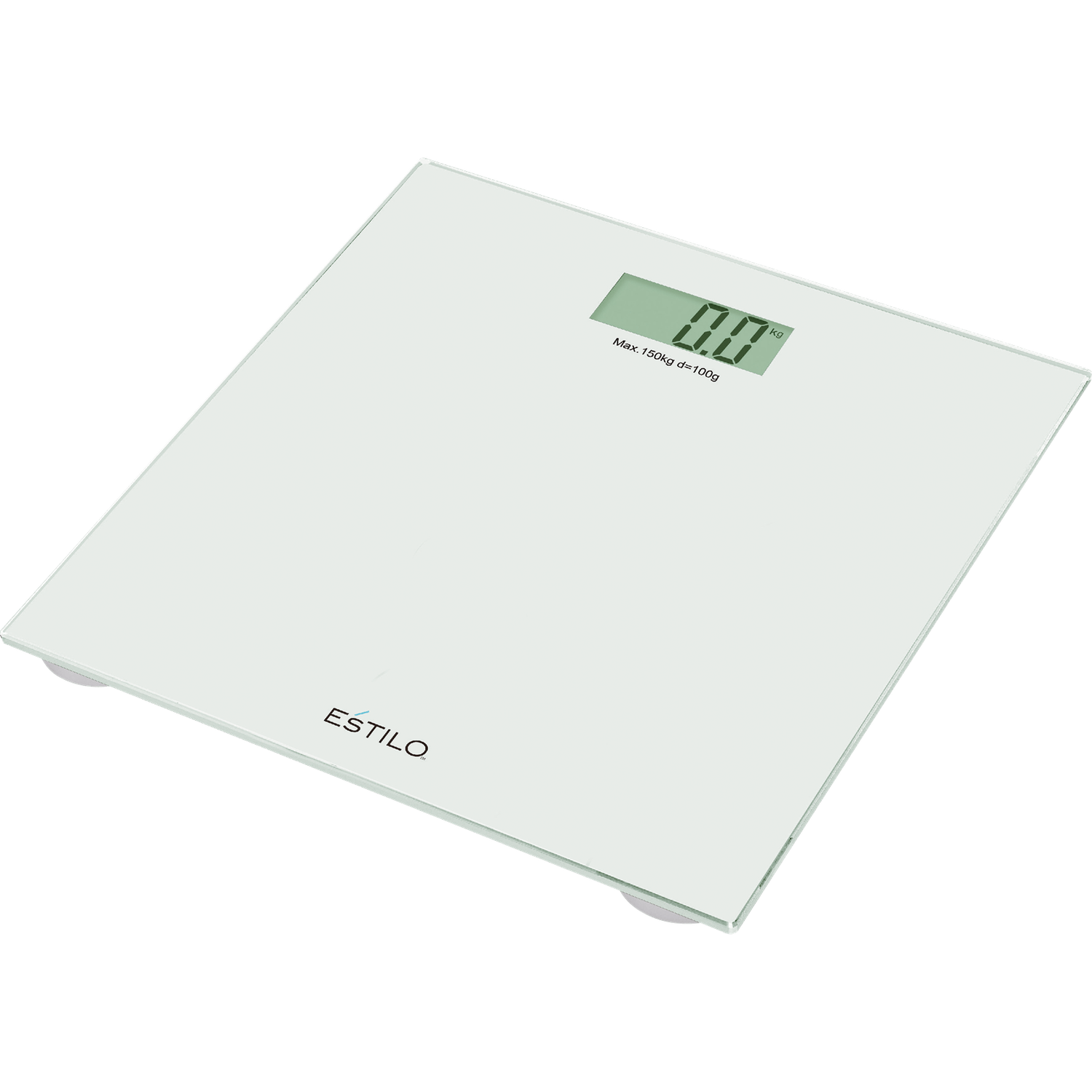 The Homebase digital bathroom scale has a tempered glass top with a maximum weight capacity of 150kg. Weight measurements are displayed in 100g intervals. Measures in kg, lbs and st.