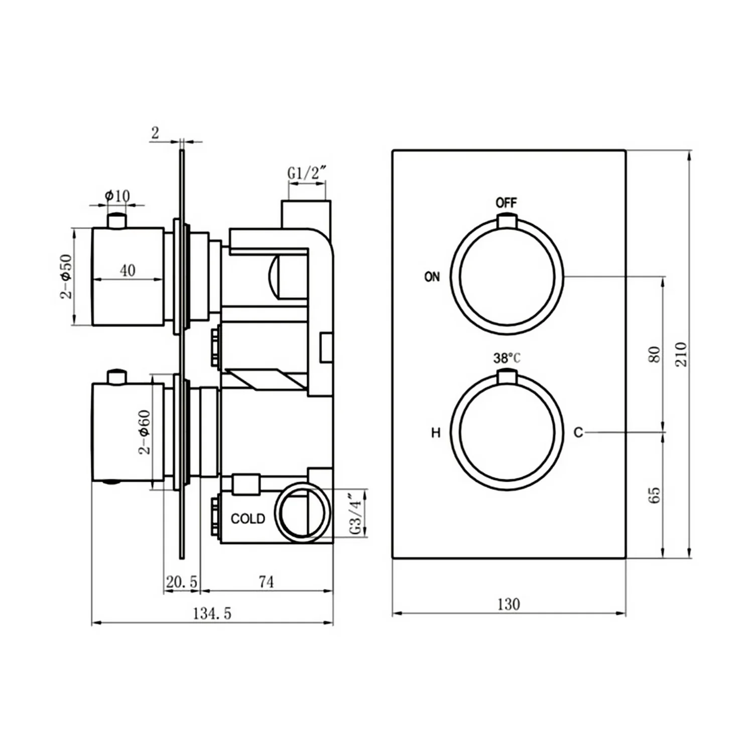 This heavenly concealed shower valve is an absolute must, with its designer handles and captivating finish which will add class and sophistication to your bathroom. This vertical valve allows you to accurately control your pressure and temperature with its thermostatic design which will prevent the handles from getting hot.
