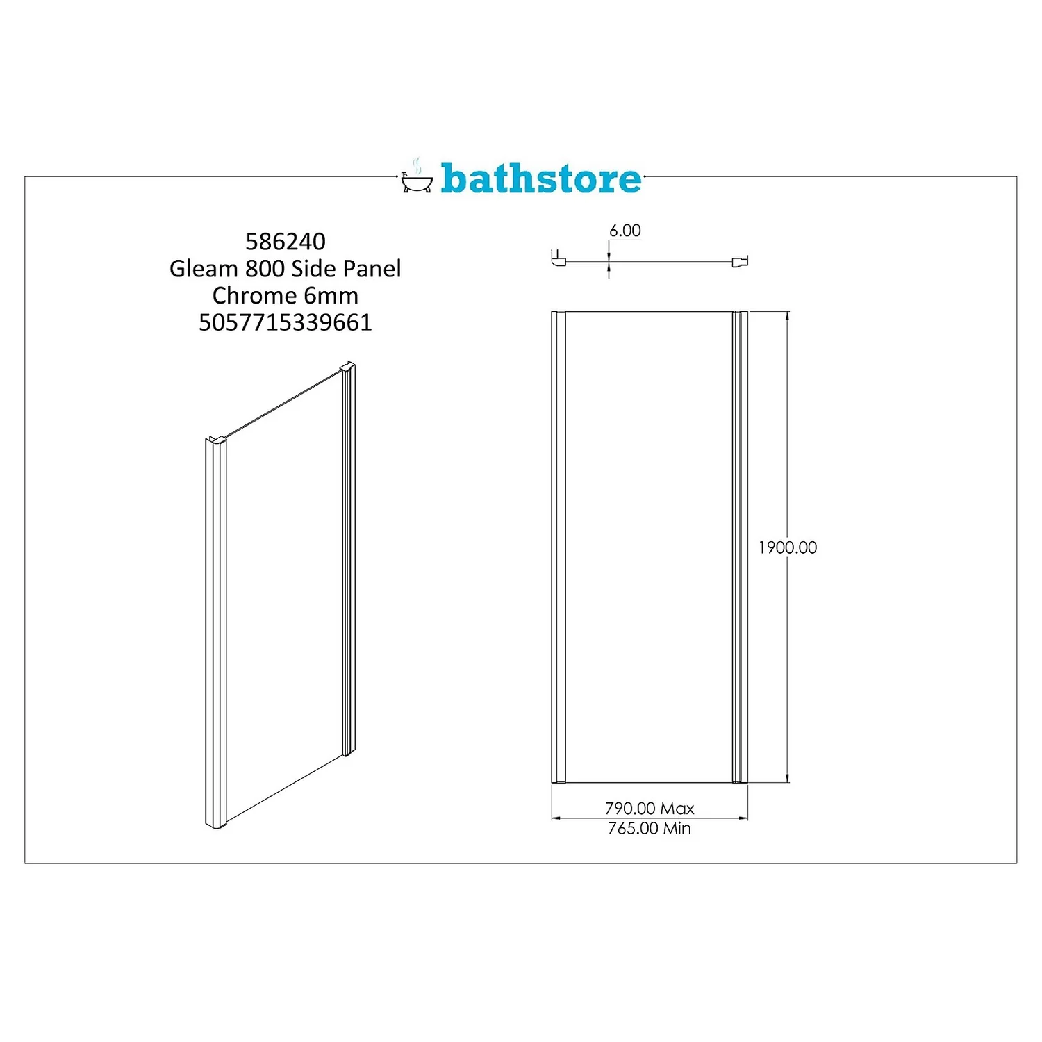 This 800mm Side Panel is compatible with any of our Gleam Hinge and Sliding Doors.