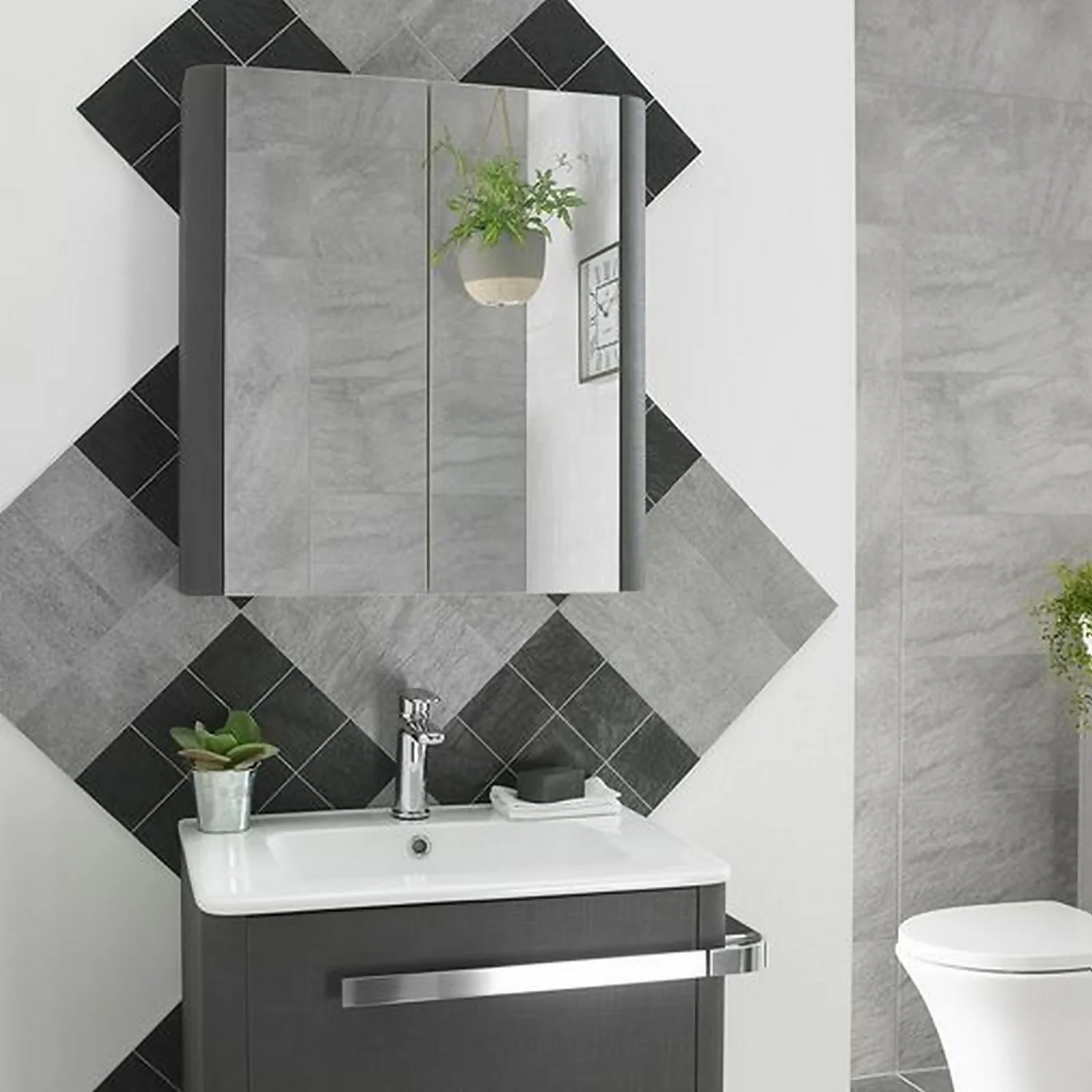 Bathstore Linen 600mm Mirror Wall Cabinet – Grey