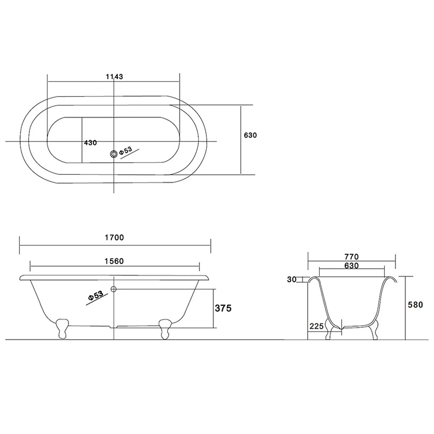 Bathstore Moulin Cast Iron Bath 1700 X 770mm With No Tap Holes