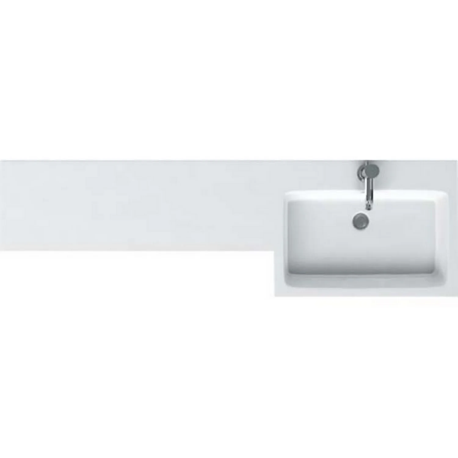 A great addition to the new MyPlan fitted bathroom furniture range, the MyPlan right hand 1500 poly marble basin and integrated top is ideal for both modern minimal bathrooms and busy family bathrooms. With a depth of 450mm it is perfect for more compact bathroom spaces as well as larger bathrooms and, with a width of 1500mm including the basin and additional worktop, this practical basin area creates a multi function storage and sanitary centrepiece. This bathroom sink with integrated worktop is manufactured from poly marble, a material that is most popular in European and American bathroom designs, and has a gel coat finish to maintain its shine for years to come. It can only be installed with the MyPlan 600 basin units (excluding MyPlan Slimline units), while the worktop can sit on any MyPlan base cabinet, bidet or toilet unit. All MyPlan furniture is available in three finishes in white, wenge and oak in offering a flexible style to suit your personal preferences. The MyPlan right hand 1500 poly marble basin and integrated top has one tap hole so it can be used with any of our mono basin mixer taps, and incorporates an overflow hole so it can only be used with slotted basin wastes. A left hand option is also available.