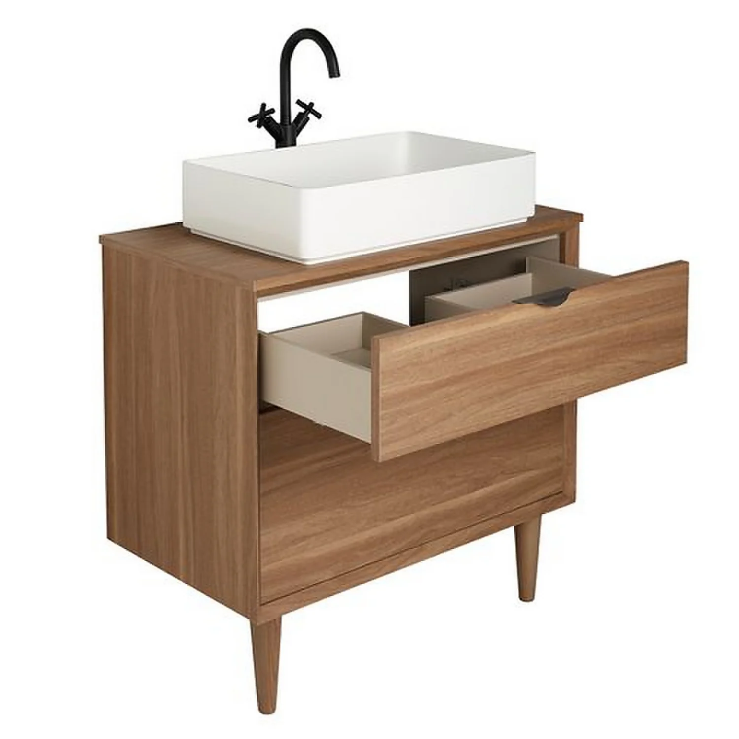 The Noir Craft 800mm Vanity Unit combines on-trend style with absolute practicality. Caramel wood, great storage and classic mid-century styled legs, makes this unit have a luxe bathroom appearance. As part of our Noir collection, it can also be combined or matched with other Noir products to create a stunning co-ordinated display.Worktop and basin not included – worktop can be purchased separately here