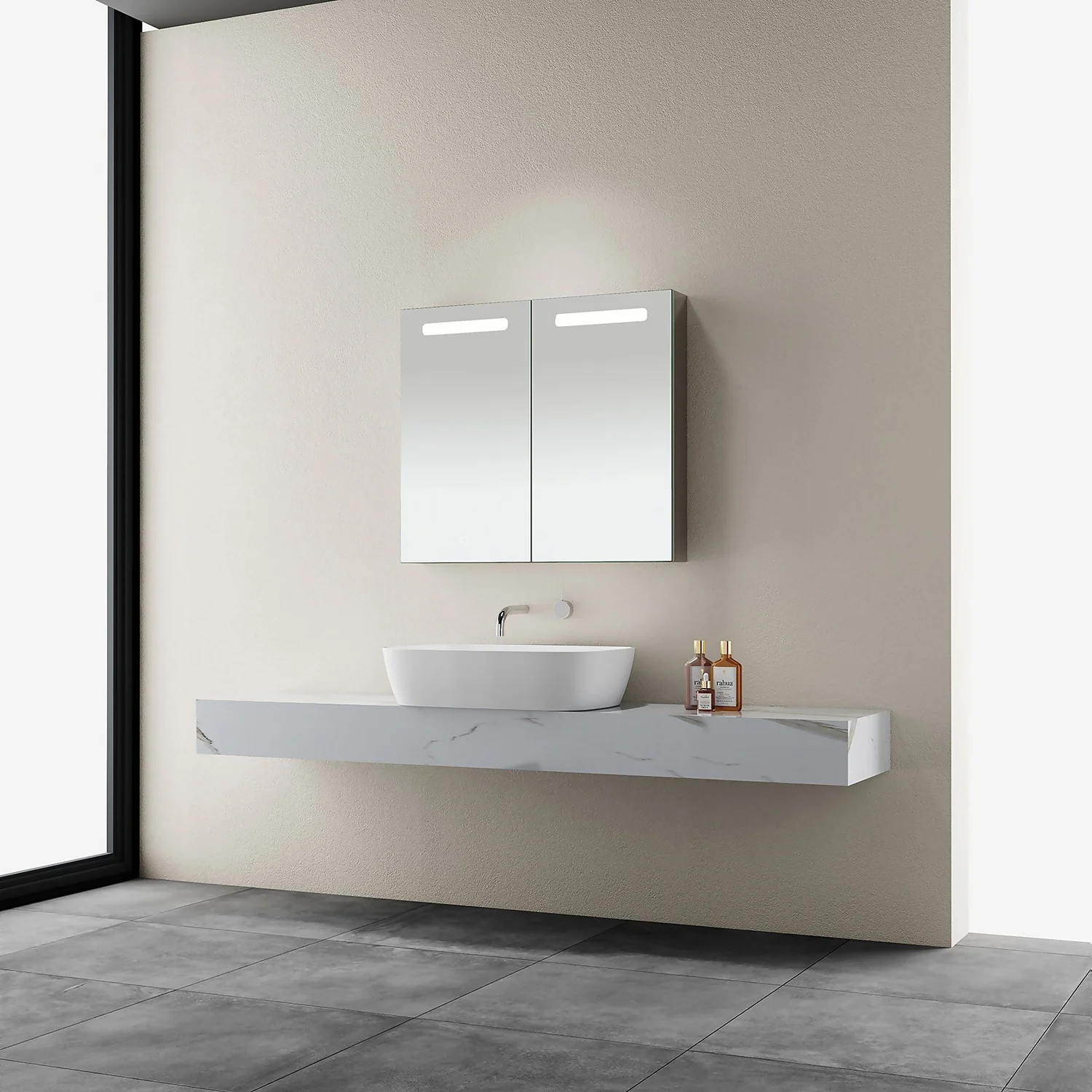 The Blenheim Cabinet is a high quality cabinet featuring soft close hinges, heat pad, shaving point & Bluetooth speakers. Mirrored internally.