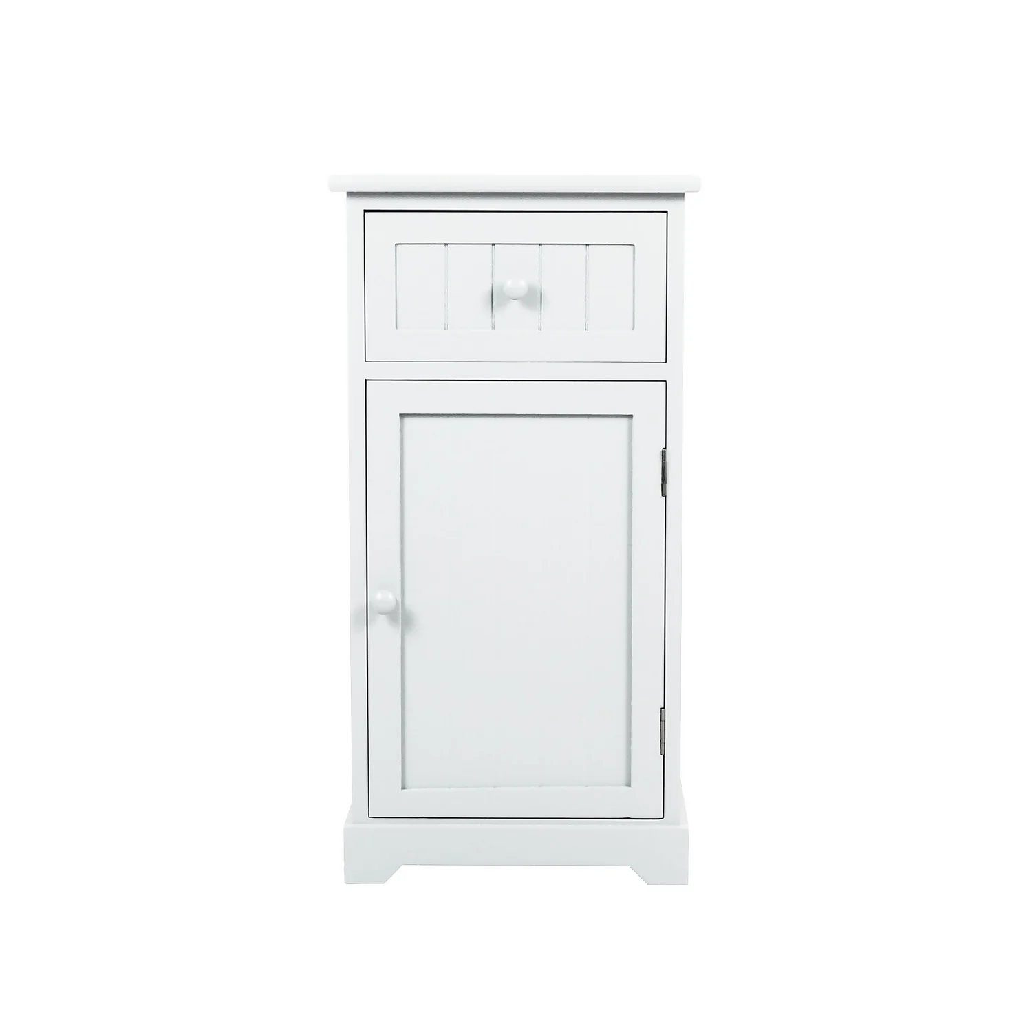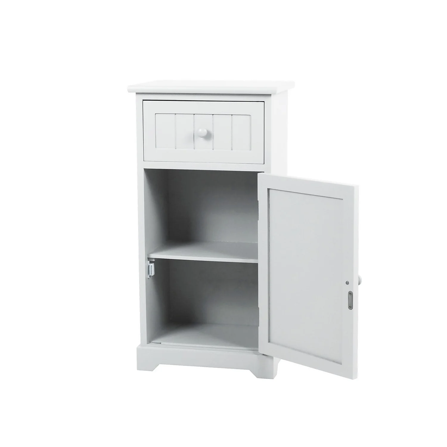 The simple and sleek design of this cabinet provides roomy storage in your bathroom.