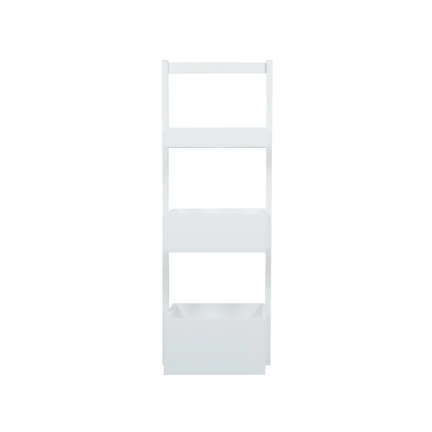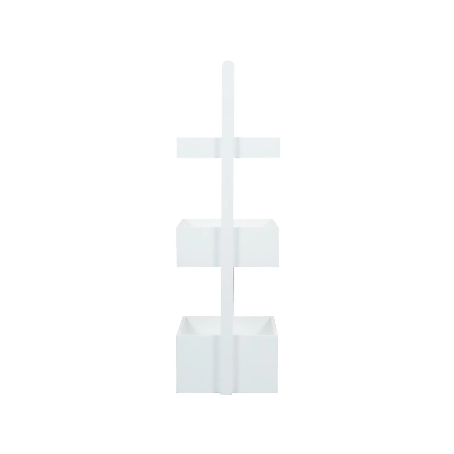 The simple and sleek design of the white 3 tier caddy provides roomy storage in your bathroom.