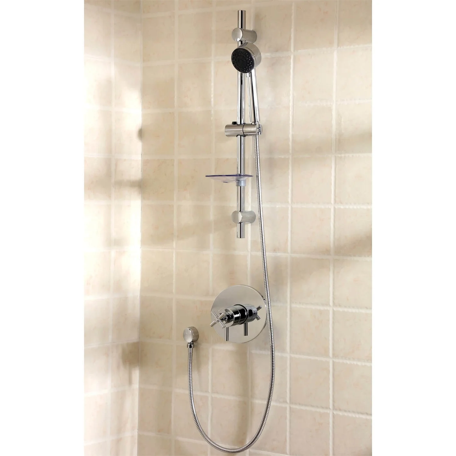 The Colwith exposed thermostatic shower mixer, complete with riser rail and shower handset, adds a modern twist to classic in any bathroom.