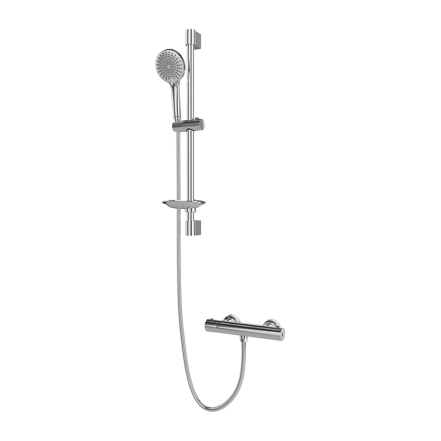 Thermostatic control gives the user assurance of safe and accurate temperature selection and cool touch technology also keeps the valve surface temperature safe in the event of any user contact. A forceful and refreshing shower experience is delivered from the single mode, rub clean handset that sits in a push button holder for variable height adjustment on a stainless steel rail.