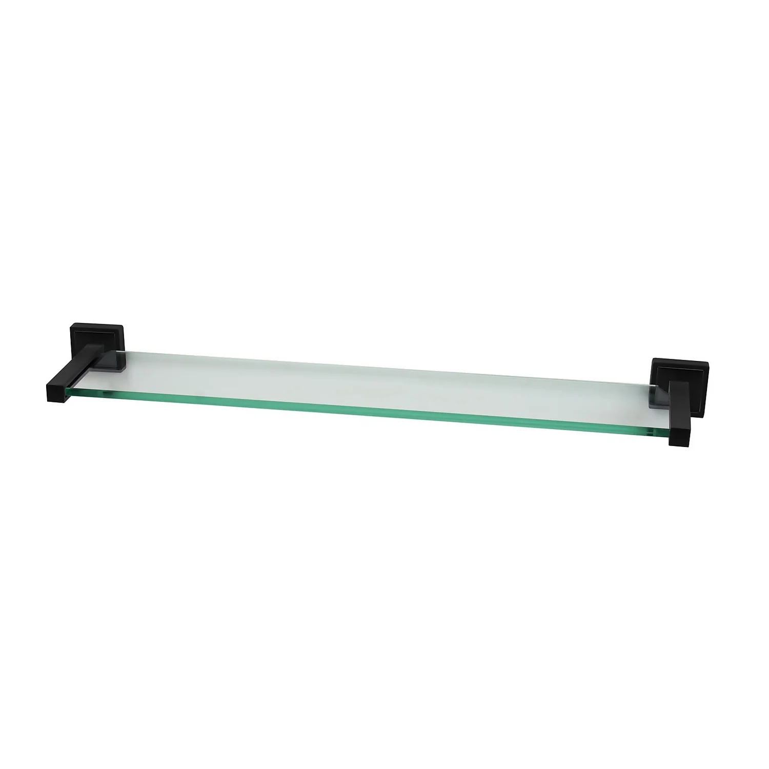 Store your lotions in style or accessorise your bathroom with this modern, clean-lined wall-mounted glass shelf. The perfect partner for the monochrome look, this 8mm thick glass shelf has flat polished edges and is supported with modern square satin black mounting brackets.
