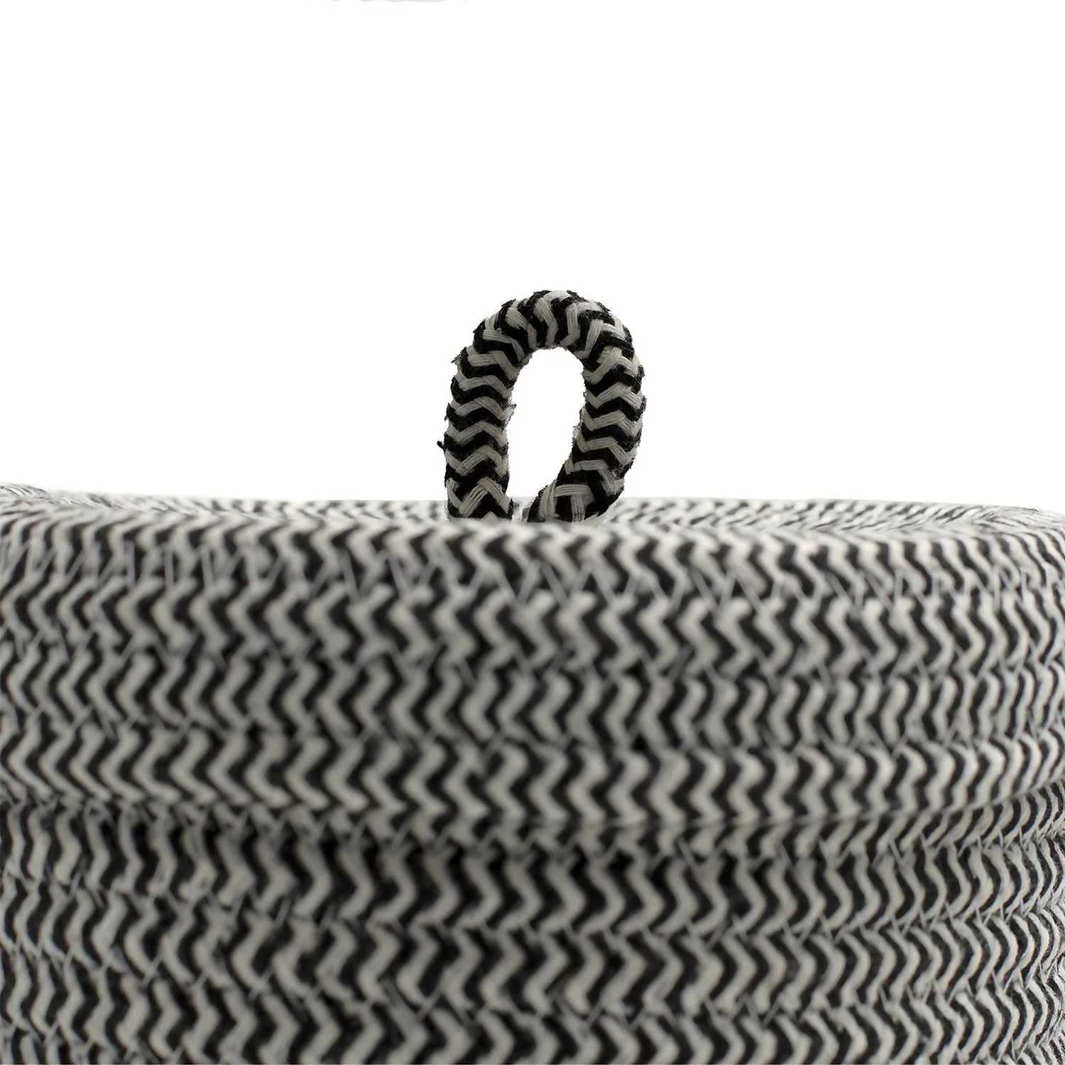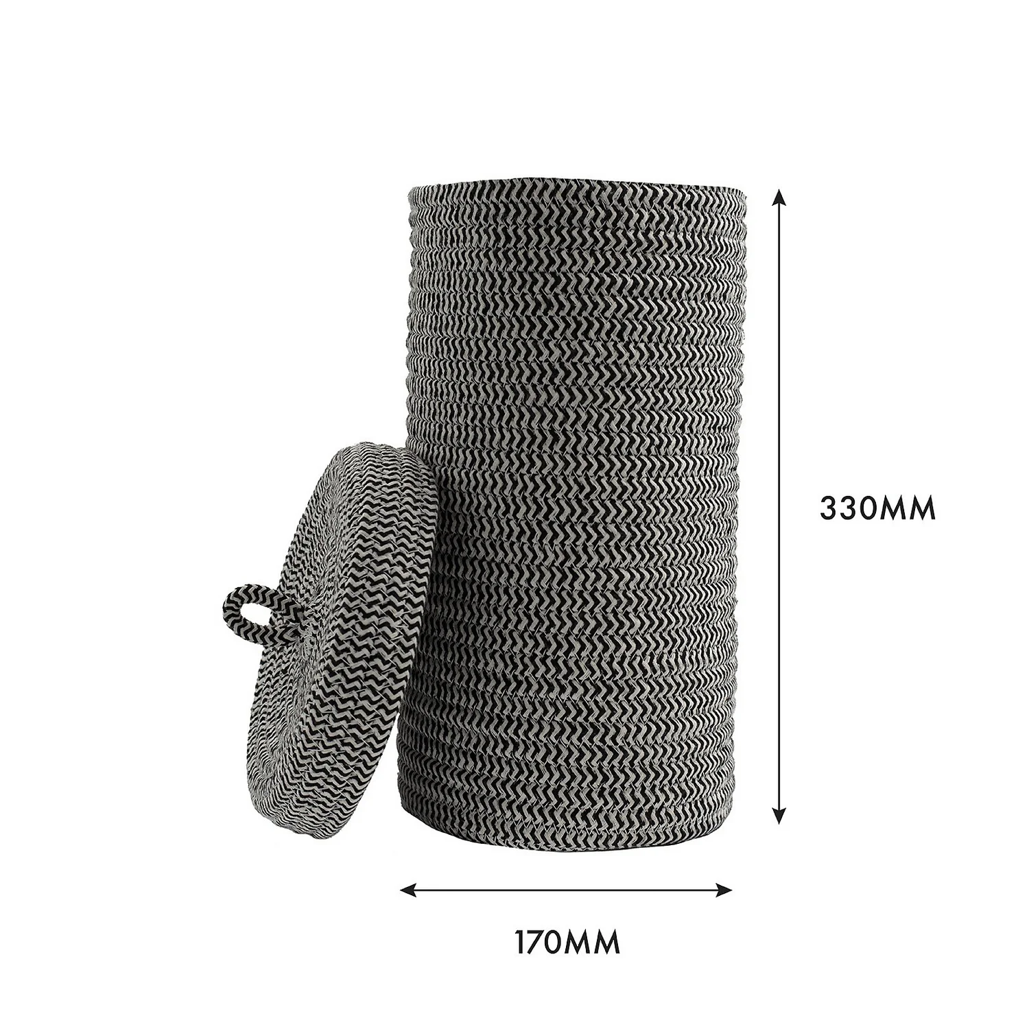 A neat addition to your bathroom with a soft, cotton rope design. The loop handle on the removable lid makes accessing stored toilet rolls easy.