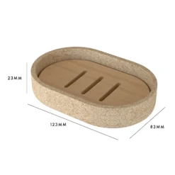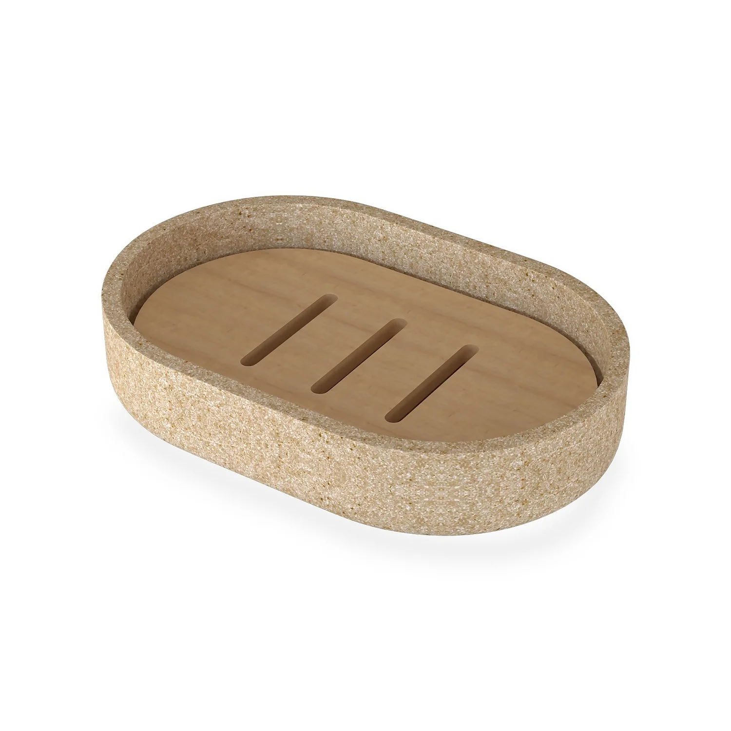 Create a natural and contemporary look in your bathroom with this beige polyresin Soap Dish with a wooden insert. The dish features high edges to prevent the soap bar from slipping out and the wooden insert features cut-out holes for easy drainage around your soap.