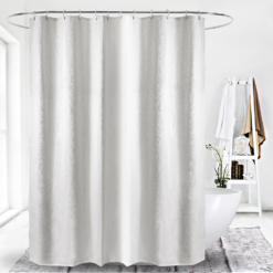 A premium alternative to standard white curtain. Made from 100% Polyester which is mildew resistant and also features a weighted hem to ensure it hangs neatly.