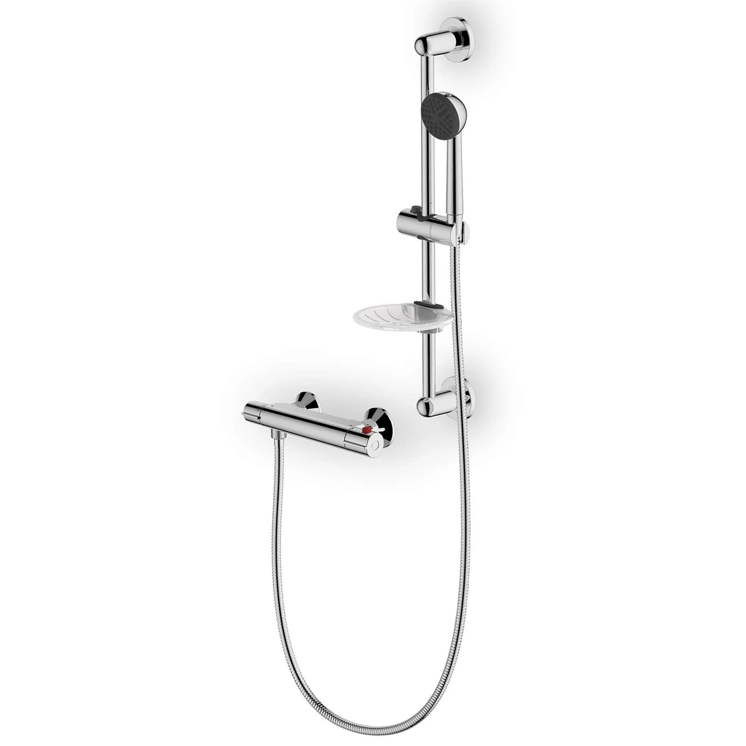 The Talisker shower set , exposed bar valve thermostatic shower with slider rail and handset , uncomplicated showering.