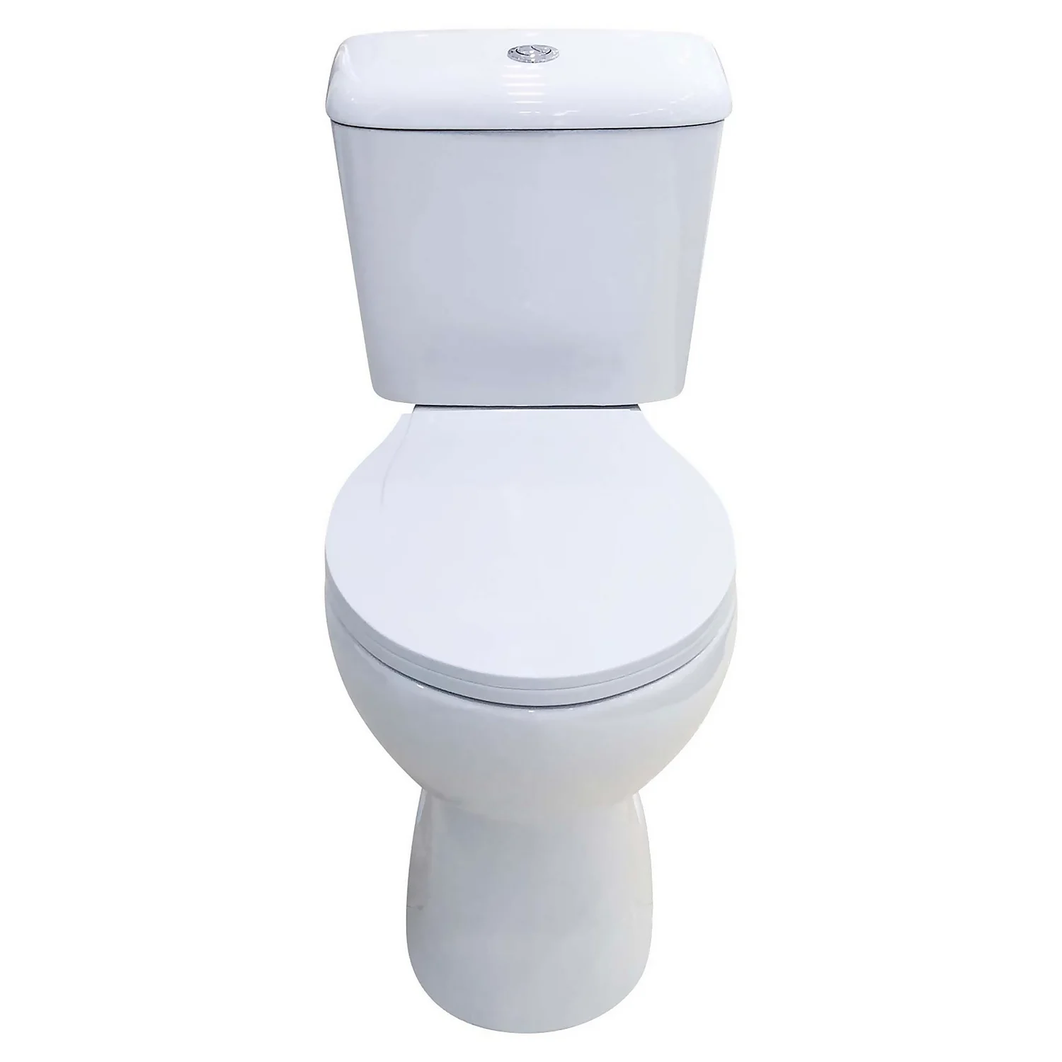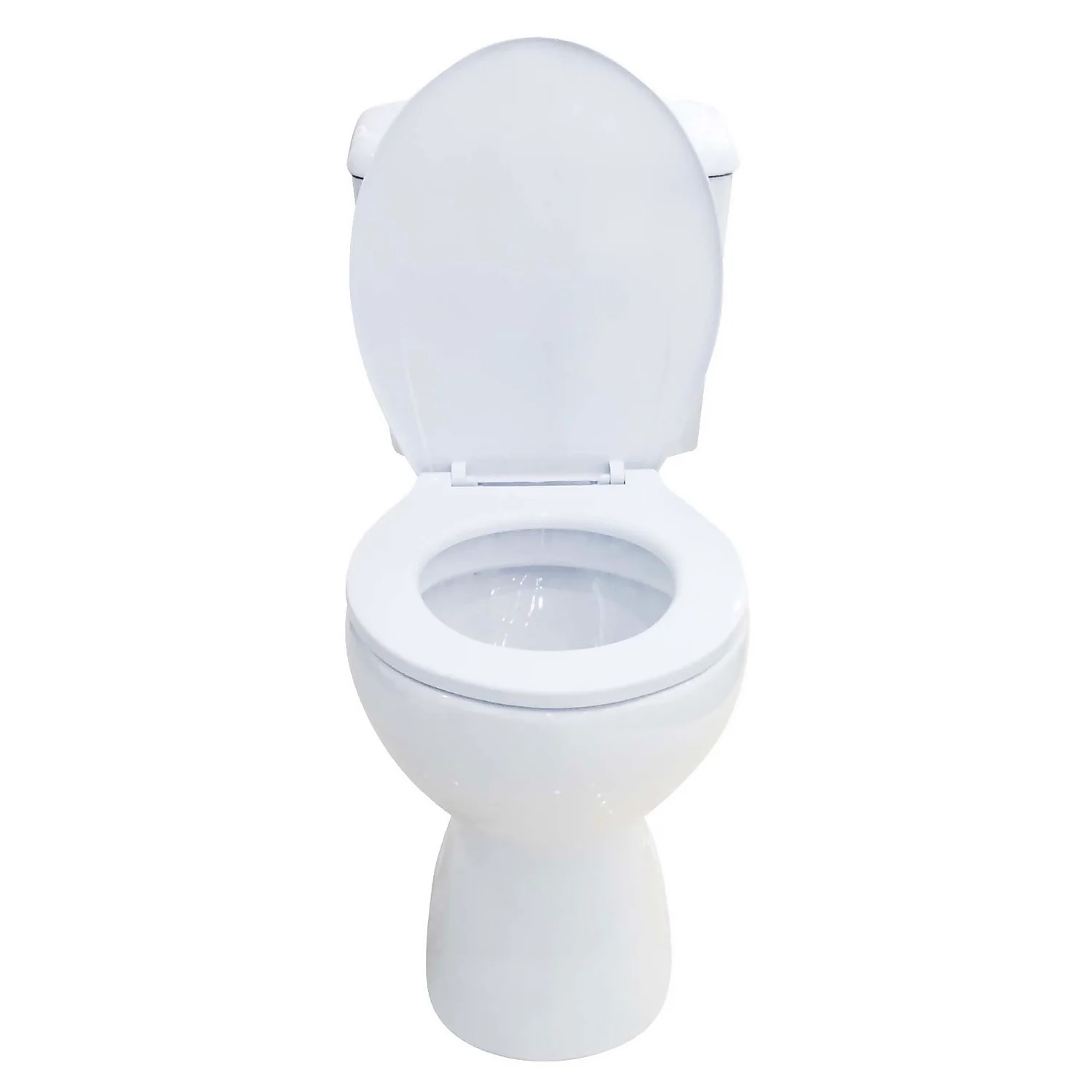 The Tilwick Close Coupled Toilet comes with a standard toilet seat and is compatible with horizontal or vertical waste pipe direction.