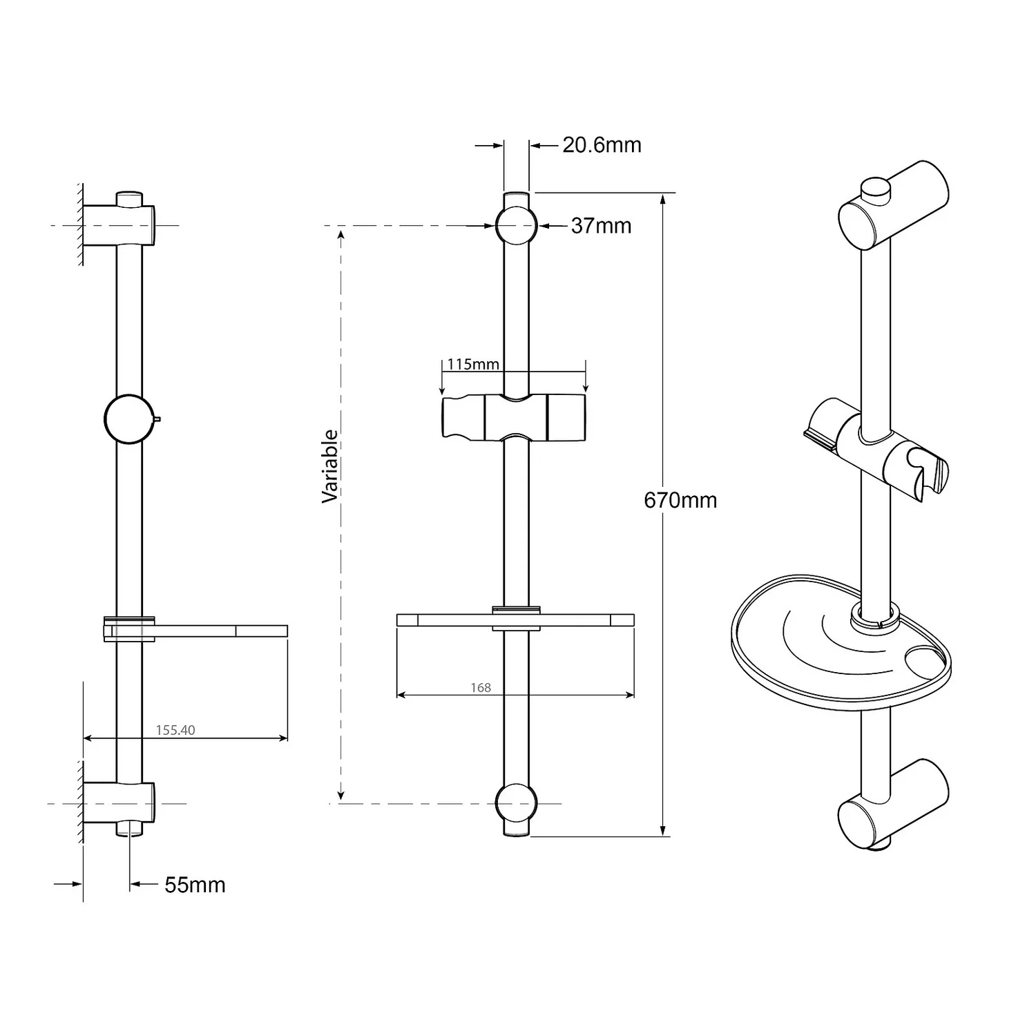 - Also includes chrome riser rail, brackets, hose retainer and height adjustable slider
