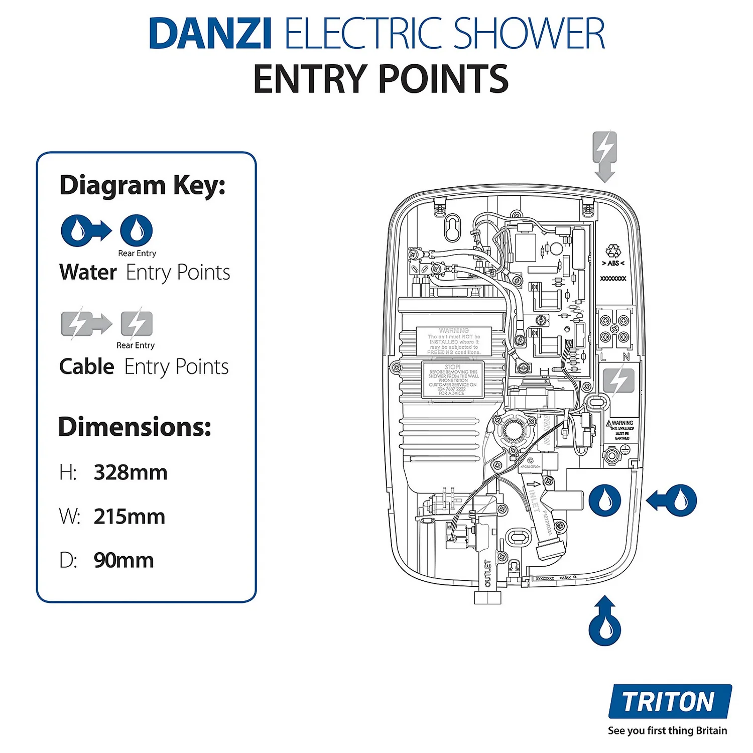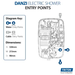 The Danzi Electric Shower offers simple to use style coupled with an array of wonderful features making it a great addition to your bathroom. Select your spray pattern on the handheld shower head from the 5 options including massage and jet spray or drench yourself with the luxurious fixed rainfall shower head or choose both! Power control buttons and a separate start/stop button make this shower super easy to operate with the added benefit of a minimalist look. Phased shutdown flushes out hot water at the end of your shower making it safer and more comfortable for the next user whilst also helping to prevent the build up of limescale.