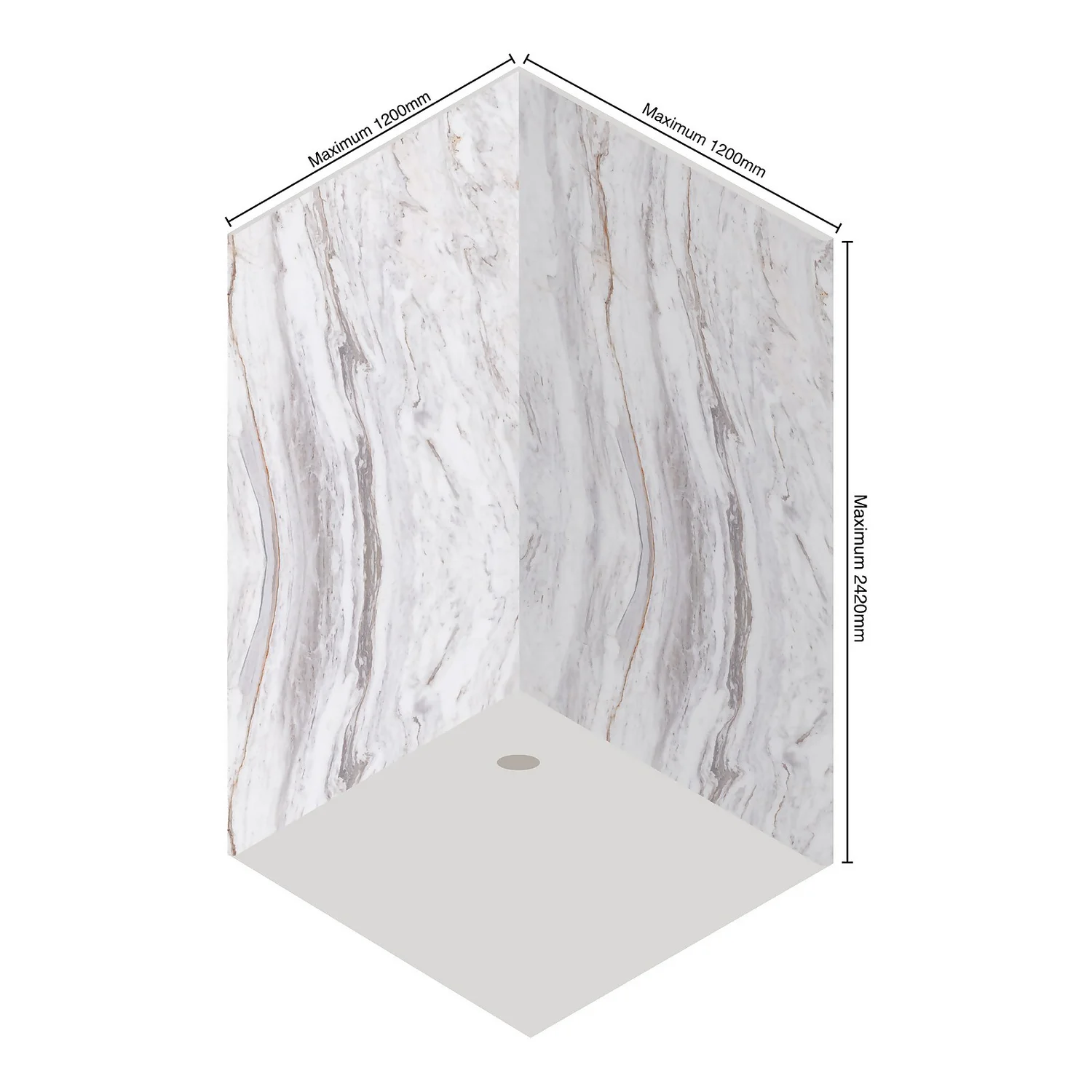 The product you are looking at here is a 2-sided kit. Each panel measures 1200mm x 2040mm x 10mm – perfect for a shower enclosure and easily cut down to size on site.