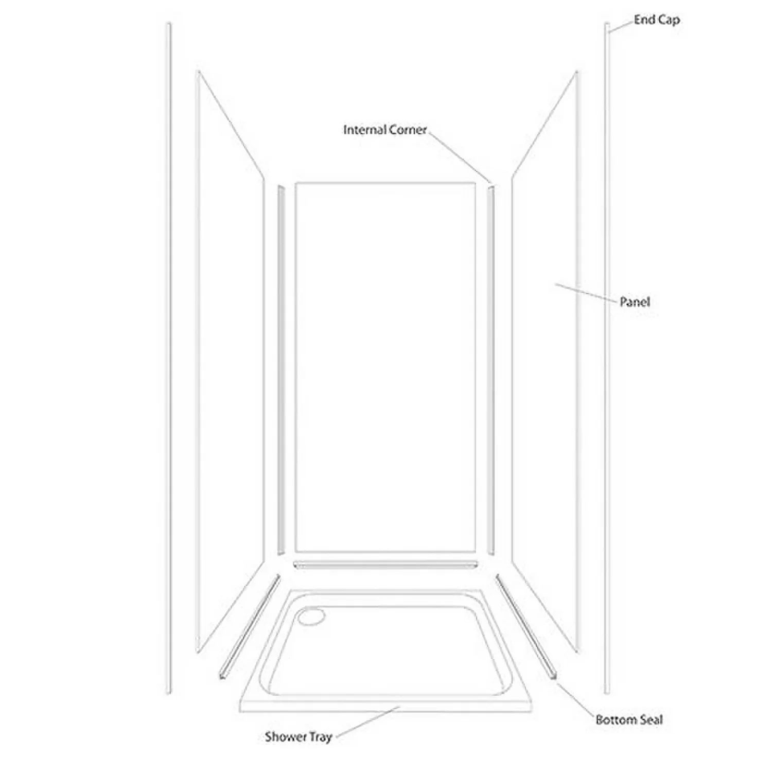 | Product Contains | 3 Panels 1200mm wide, 2 Internal corner, 2 End Caps, 4 Adhesive, 3 Silicone, fitting guides 1 cleaning kit |